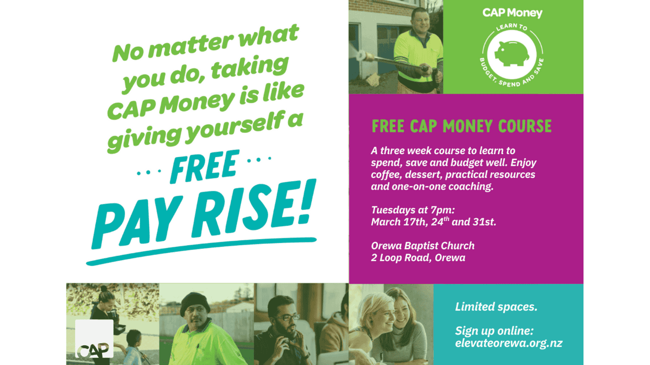 Event is free, but please register your details under ‘free tickets’ at: www.elevateorewa.org.nz/event-details/cap-money-course-term-1-2026