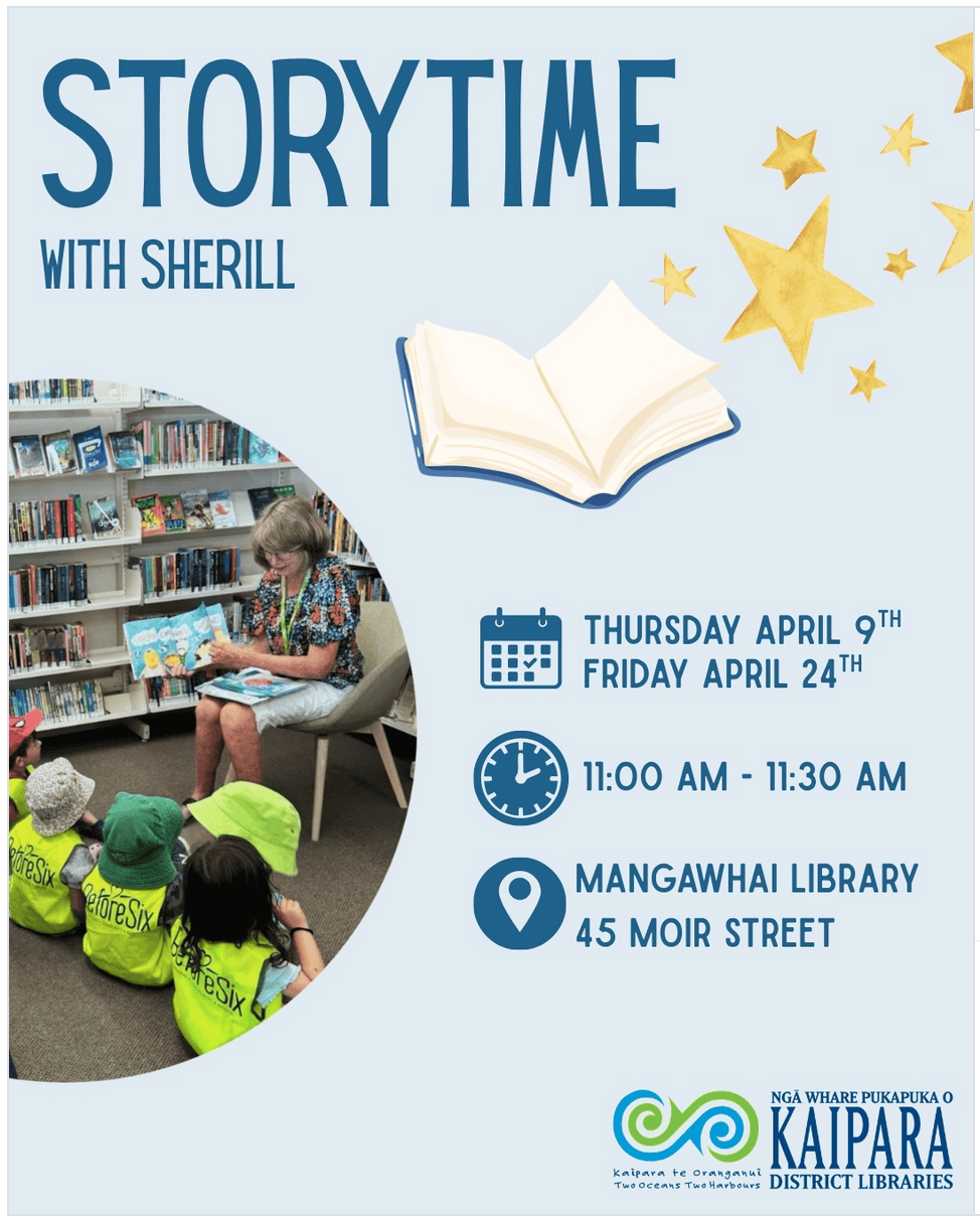 Bring your tamariki along on the first Thursday or last Friday of the month to the Mangawhai Library at 11:00-11:30am to hear a wonderful story from our collection read aloud! Friday, April 24th. We can’t wait to see you there!