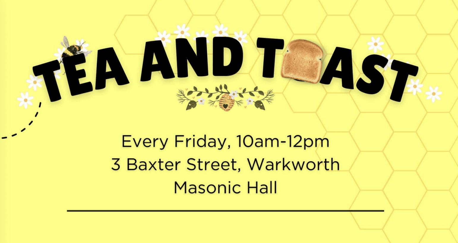 Tea and Toast is a free weekly drop in session at Warkworth Masonic Hall from 10-12noon