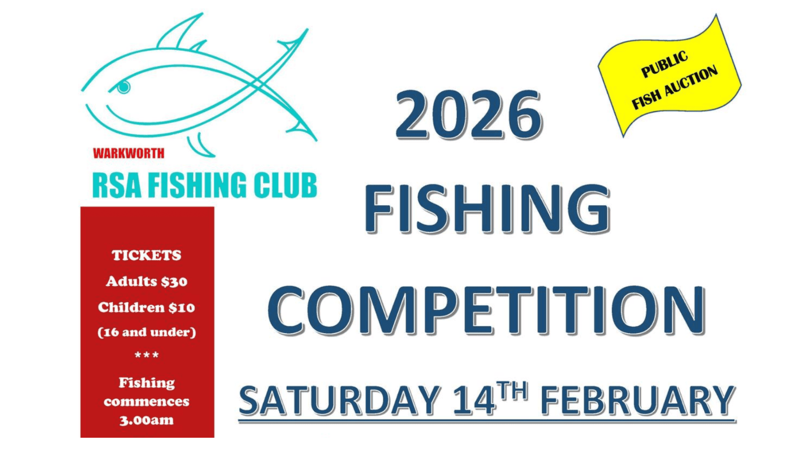 Public fish auction at 4.30pm in the RSA Carpark