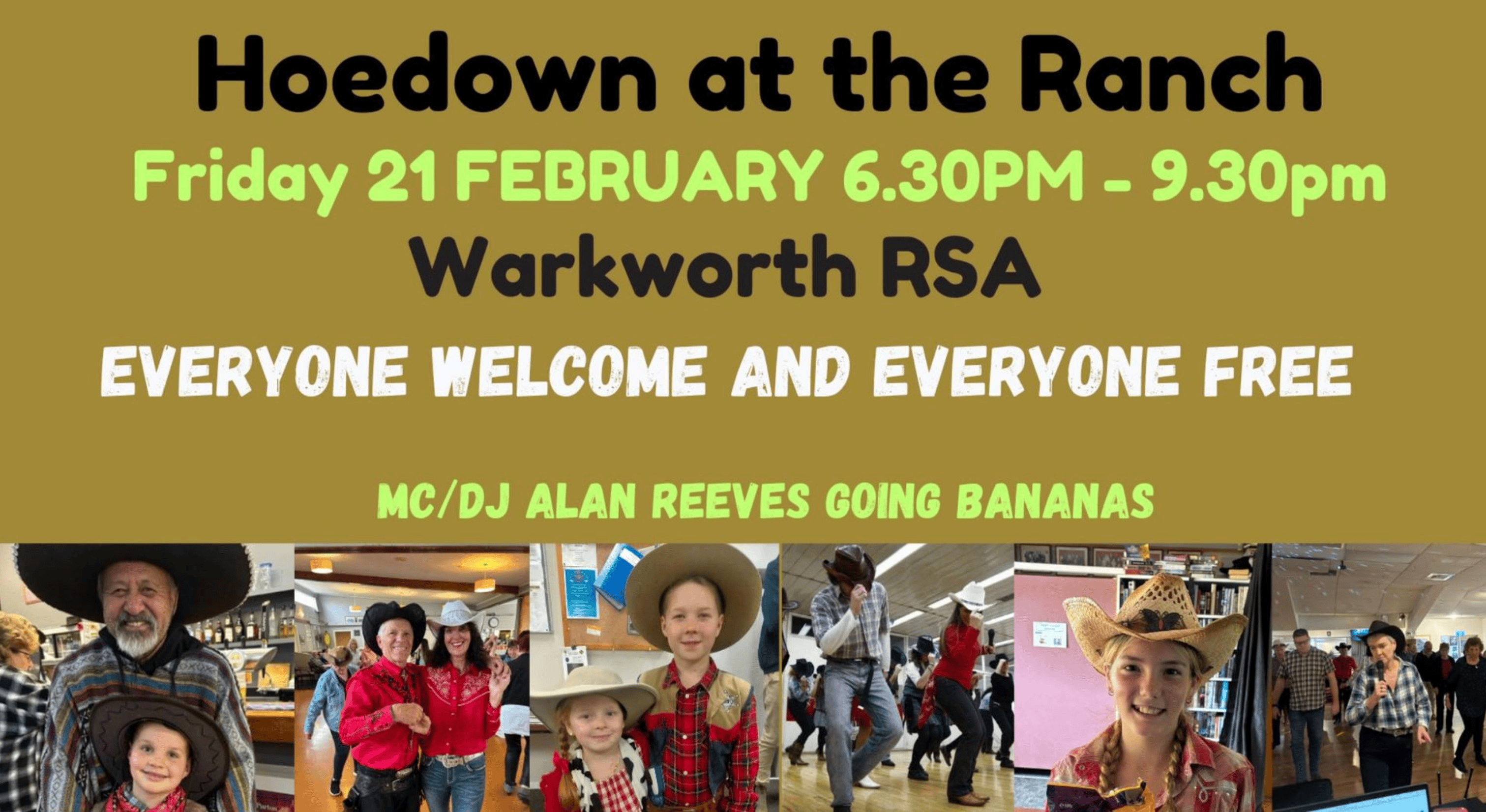 All are welcome to the RSA Warkworth Hoedown, Friday 21 Feb 2025, 630-930pm, free entry.